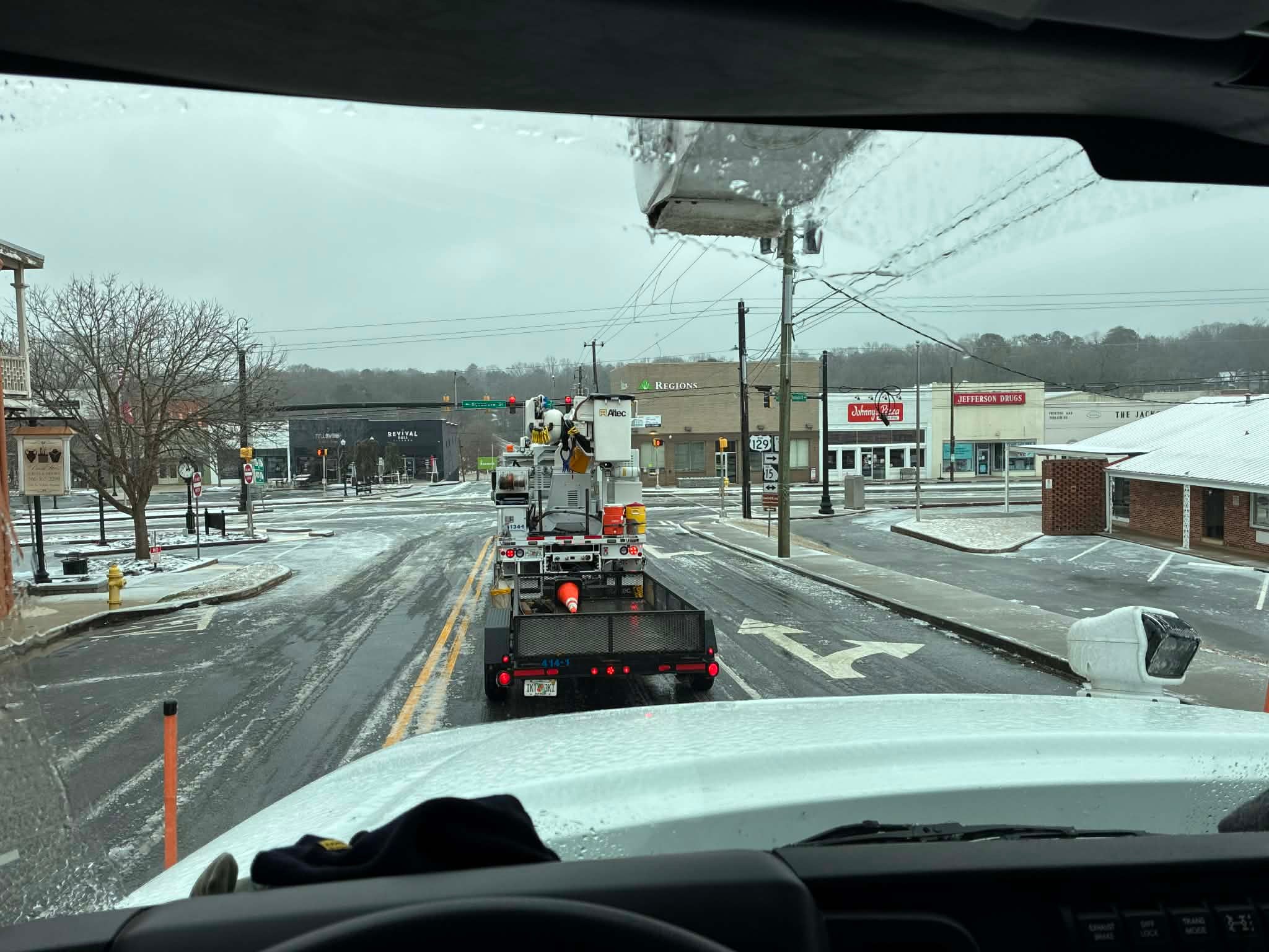 WREC crews staged in northern Georgia are now heading to assist our fellow cooperative,  Jackson EMC. Road conditions are deteriorating, with travel speeds limited to about 20 mph.