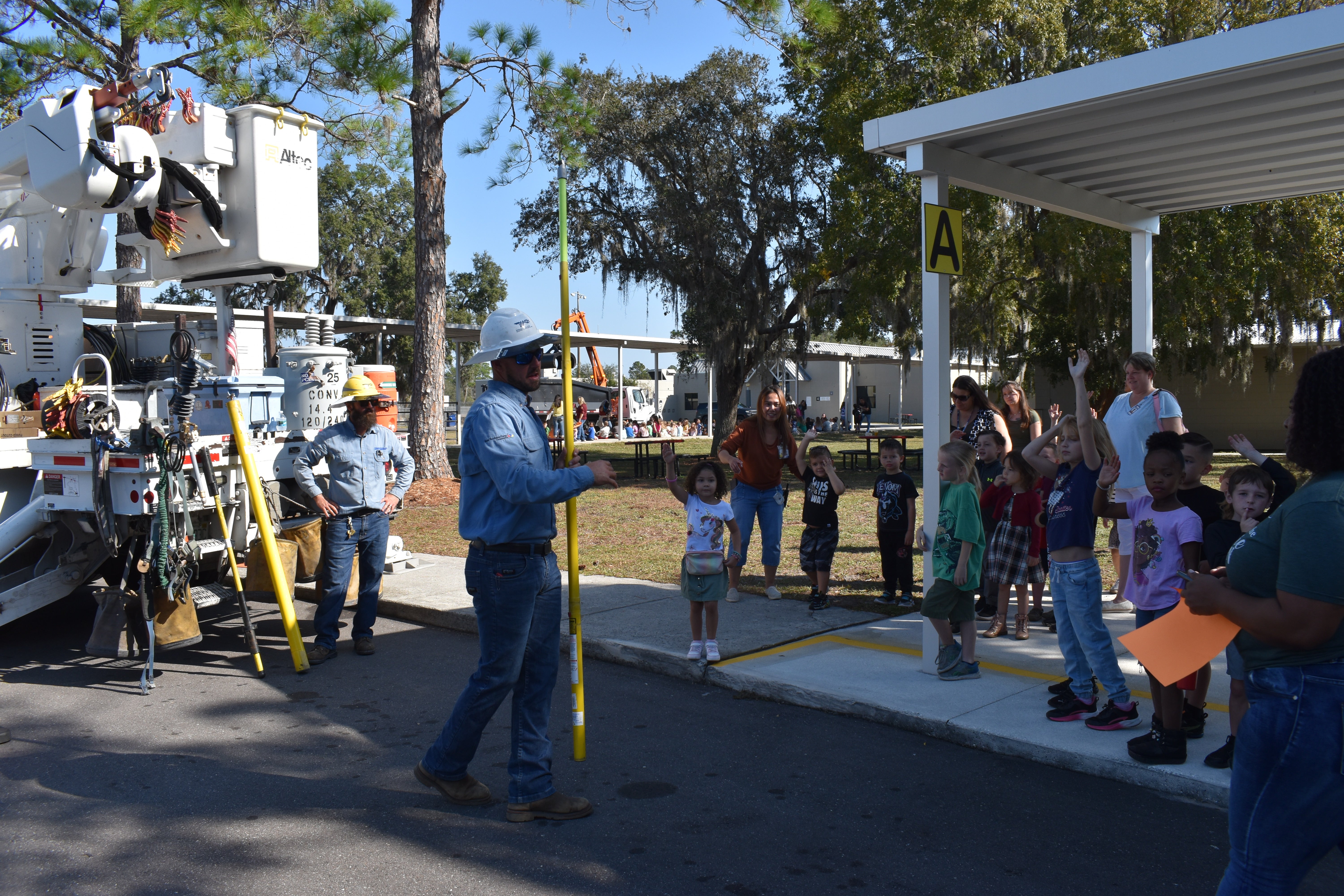 Today, WREC linemen from our Bayonet Point office, Randy Tolle from our Bayonet Point office, and WREC linemen from our One Pasco office participated in multiple Great American Teach-In events! They attended Hudson Academy, Hudson High School, Hudson Primary Academy, Moon Lake Elementary School, and Kirkland Ranch Academy of Innovation.