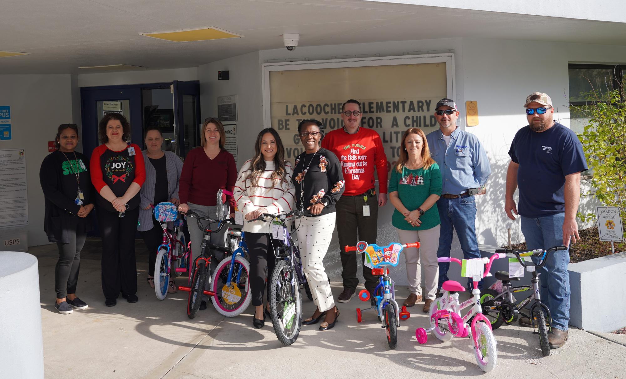 Today, employees from our General Office delivered gifts to Lacoochee Elementary School for 26 children, including 14 brand-new bikes!
