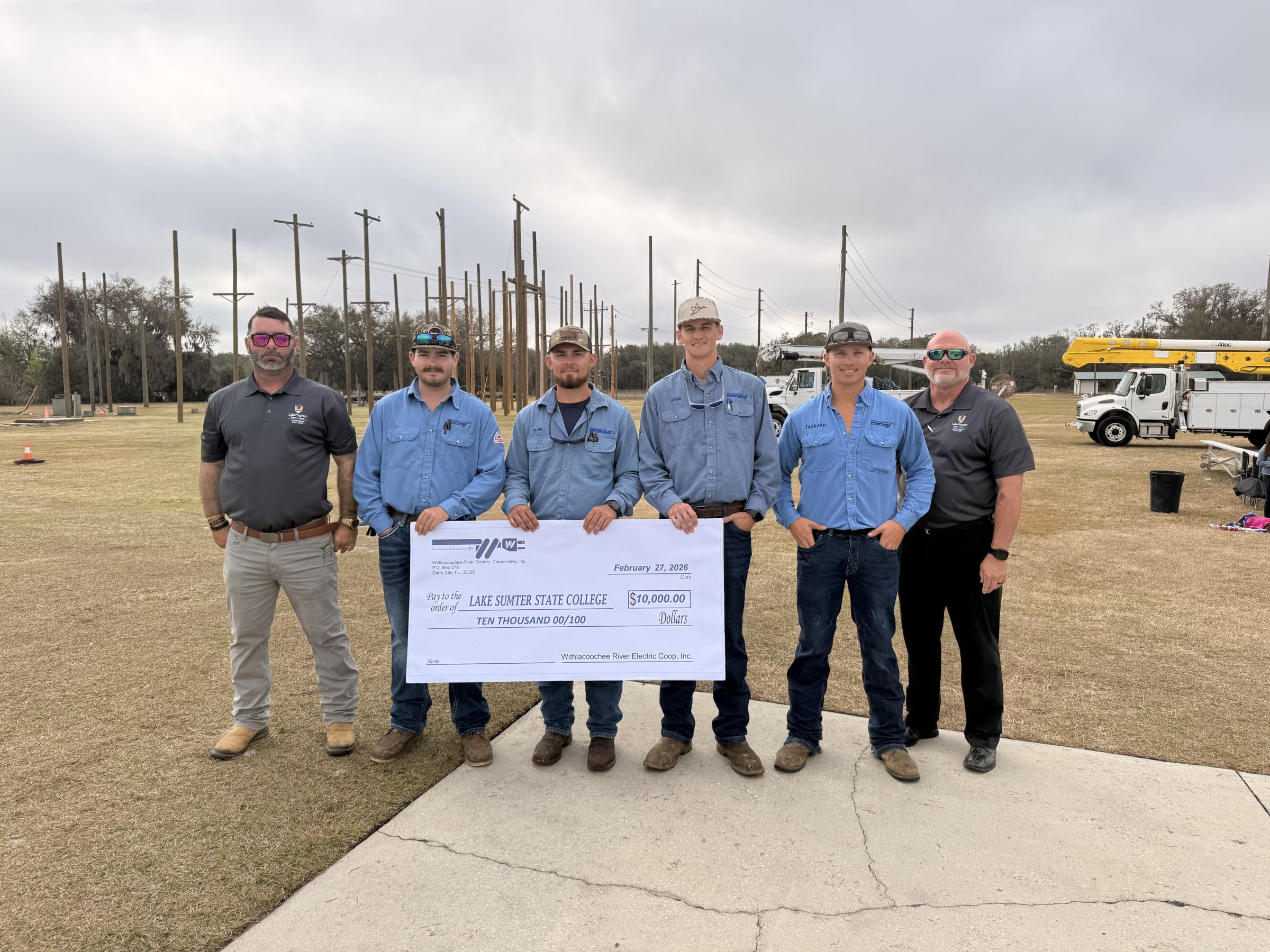 Today, at the Lake-Sumter State College Lineworker Bootcamp Graduation, WREC proudly presented a $10,000 contribution to support this exceptional program.