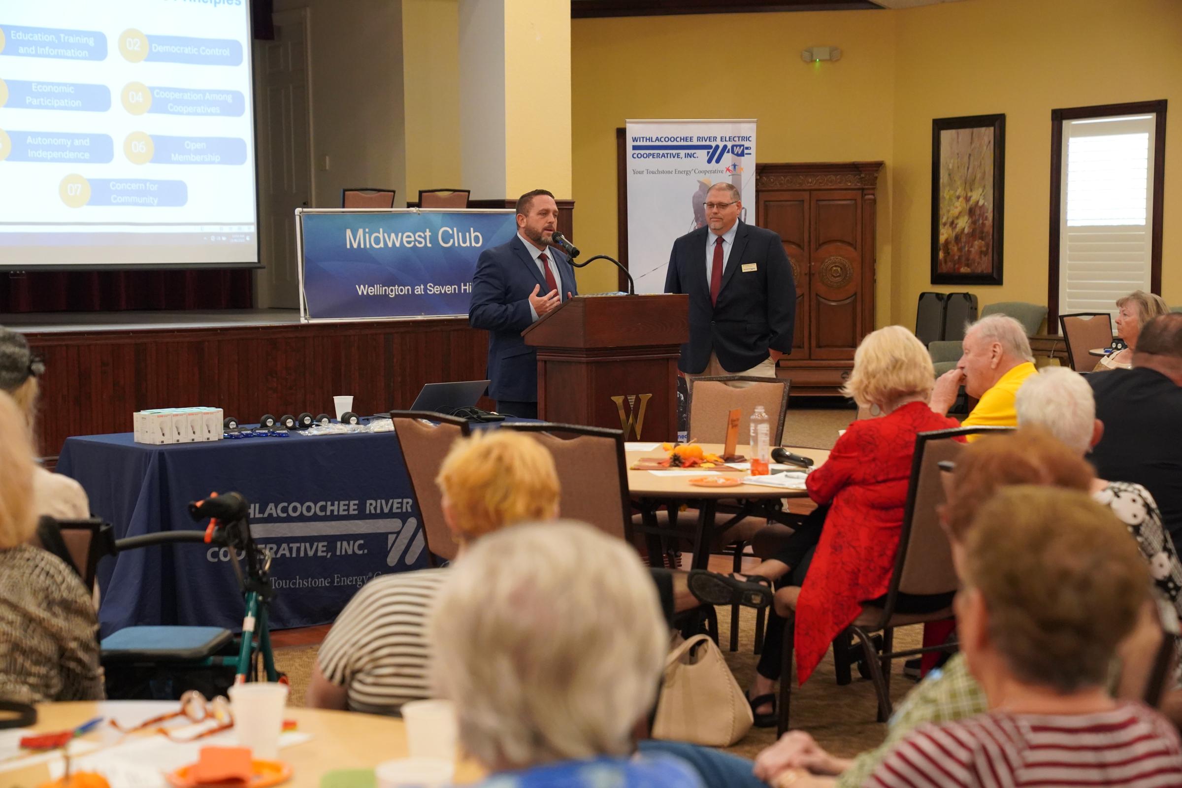 WREC’s General Manager David Lambert, Manager of Member Relations Gary Steele, and District Manager Ben Cooper had the pleasure of speaking with members of the Midwest Club about the history of our Cooperative, our mission, and the many ways we serve our community.