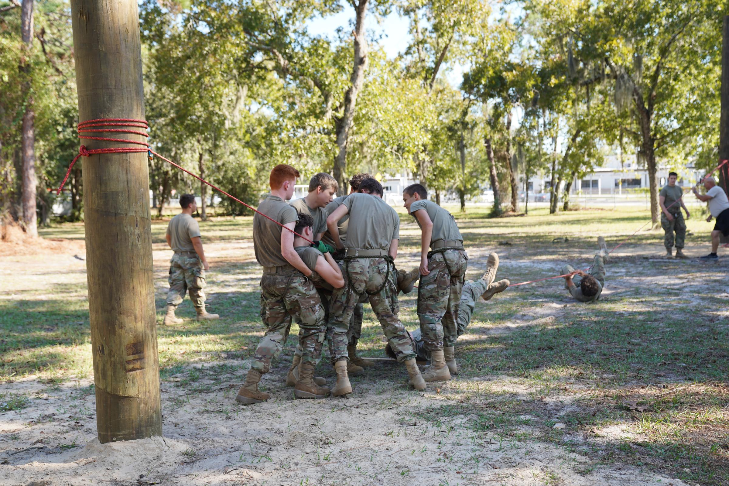 We recently donated and set utility poles - 15 feet in the ground and 15 feet above - to create a challenging rope bridge course. This setup will help cadets train for upcoming competitions that test speed, skill, agility, and teamwork.