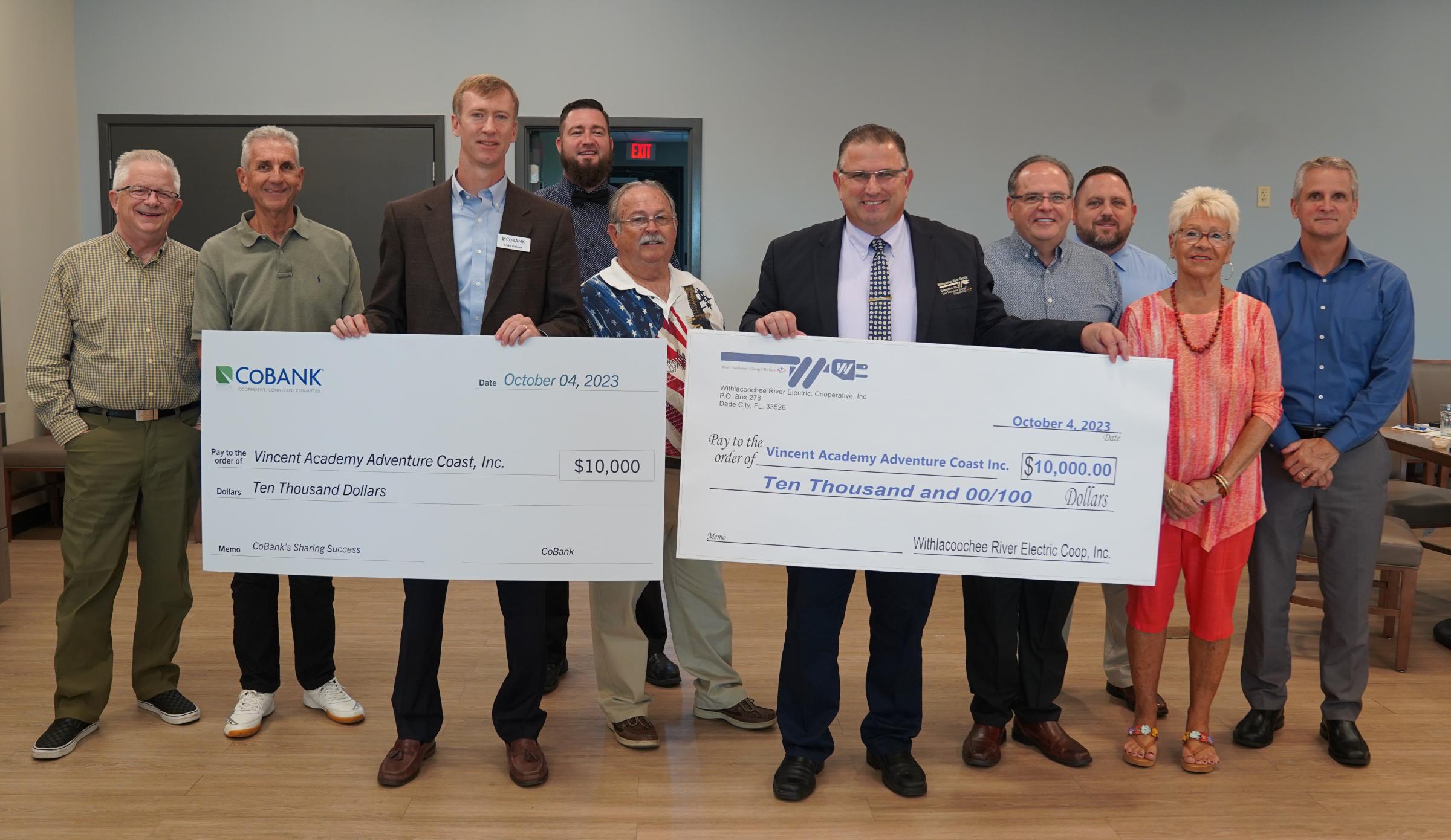 WREC proudly announced a generous donation of $10,000 to the Vincent Academy Adventure Coast, a local organization dedicated to empowering individuals and families that are impacted with mental illness to lead fulfilling lives. The donation is matching a $10,000 grant donation from CoBank, a mission-based cooperative banking lender that maintains a variety of corporate social responsibility programs. The Vincent Academy Adventure Coast focuses on providing educational, vocational, and life skills training to offer a path of recovery and hope for those with a mental illness. Their mission aligns closely with WREC’s commitment to supporting the communities it serves, making this donation a meaningful step towards creating positive change.