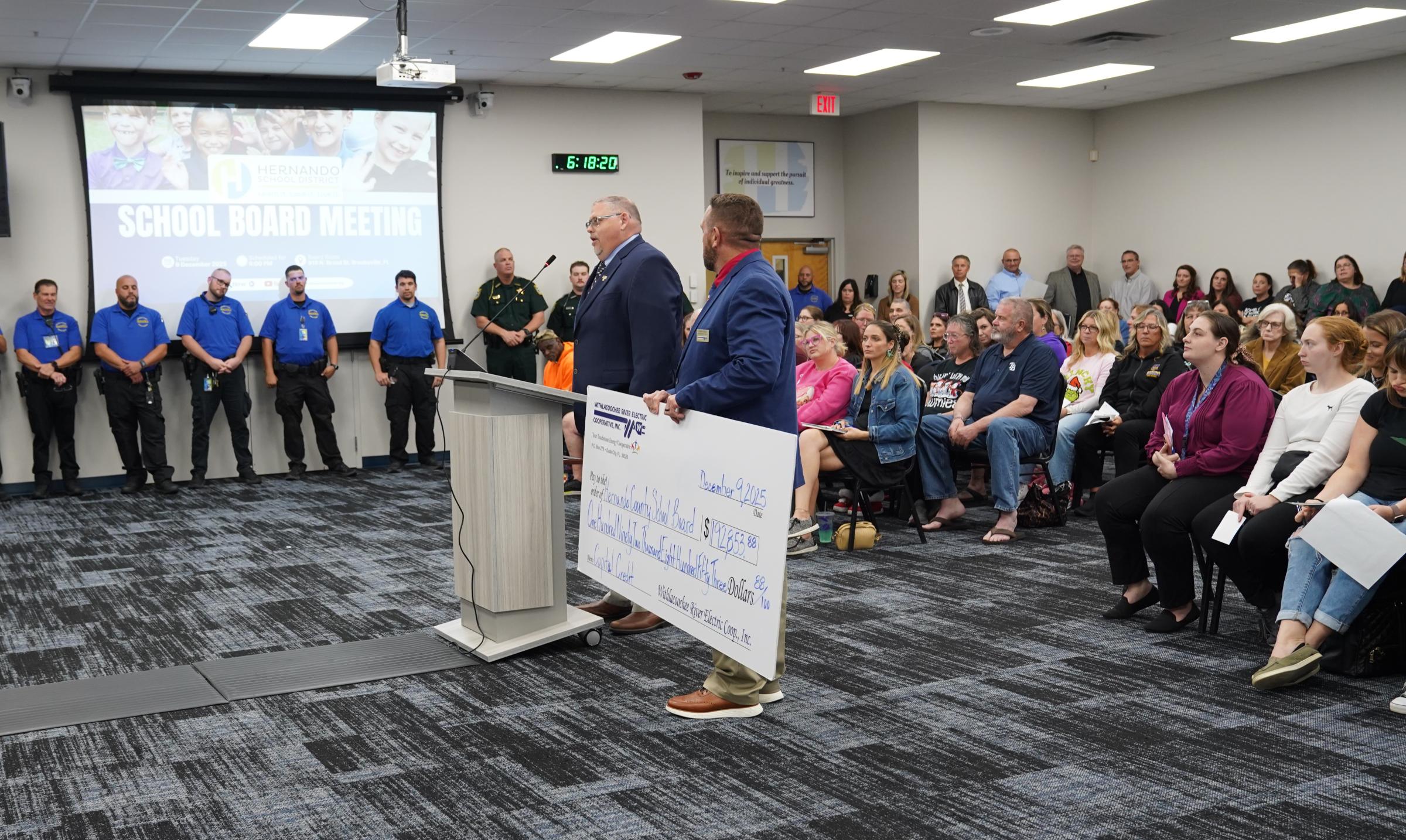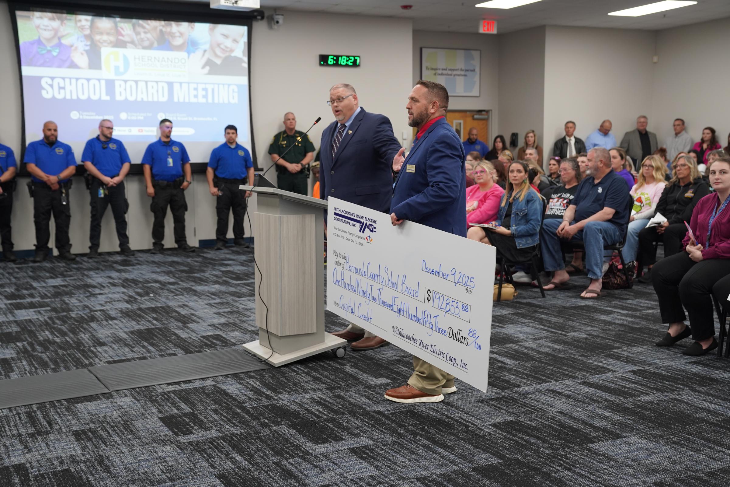 Last night, West Hernando District Manager, Ben Cooper, and Member Relations Manager, Gary Steele, delivered a capital credit refund of $192,853.88 to the Hernando County School Board!