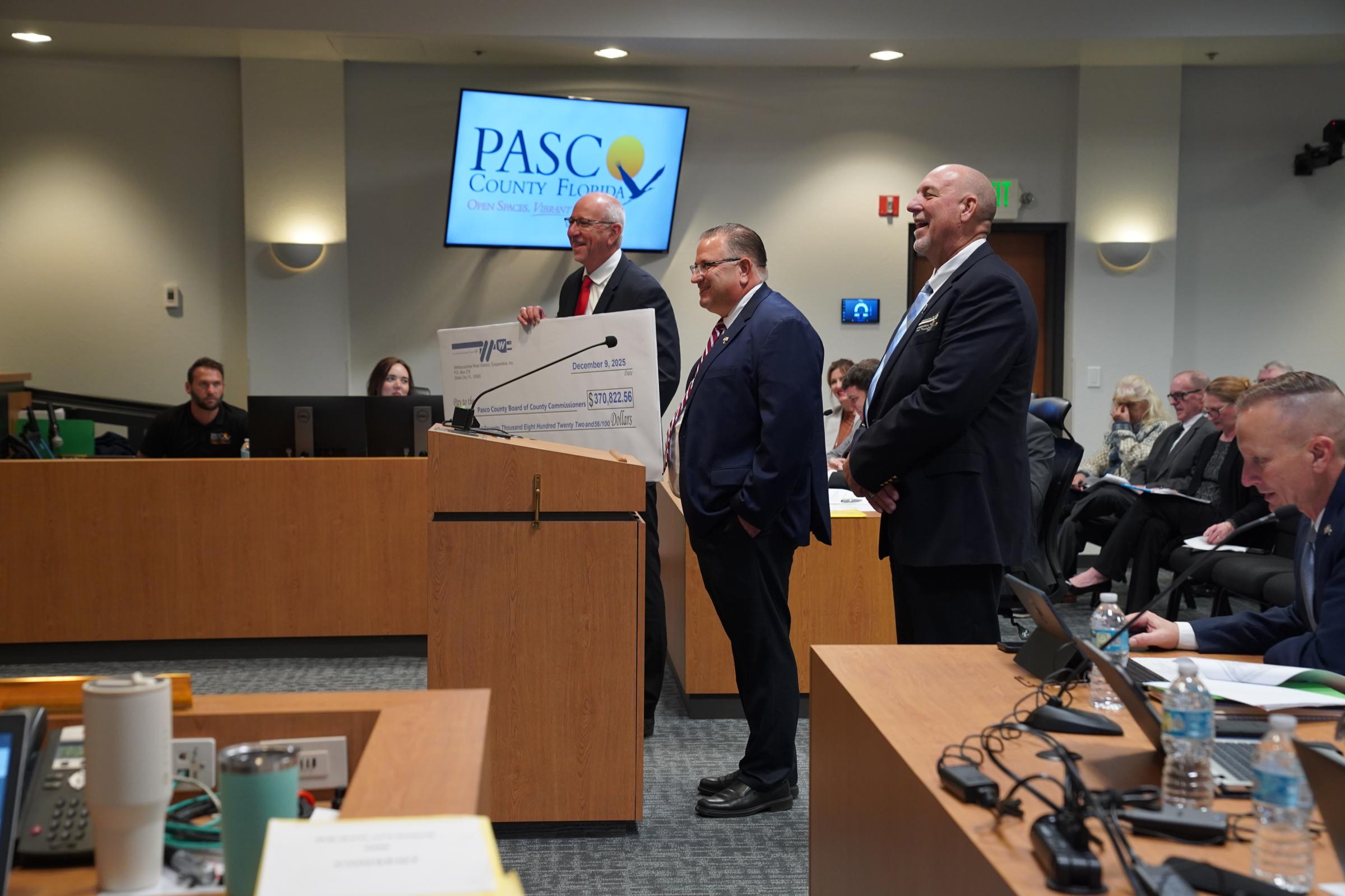 Today, WREC General Manager David Lambert, along with District Managers John McCarty and Ricky Gude, proudly presented the Pasco County Board of County Commissioners with a return of $370,822.56 in capital credits!