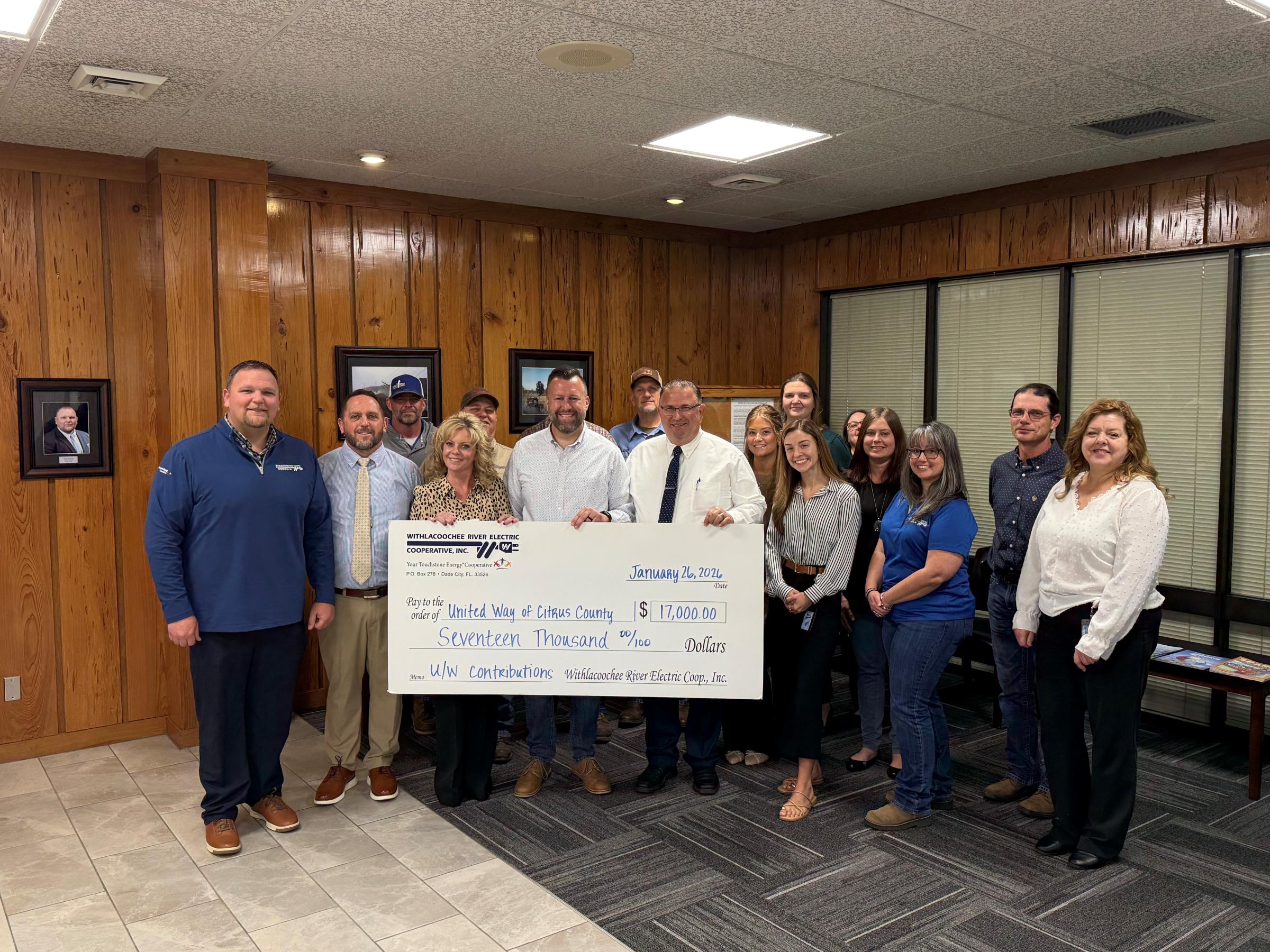 WREC and its employees are proud to support the United Way of Citrus County and the vital work they do in our community. Thanks to the generosity of our team, we were able to contribute $17,000 to help fund programs that make a meaningful difference for local families and neighbors.