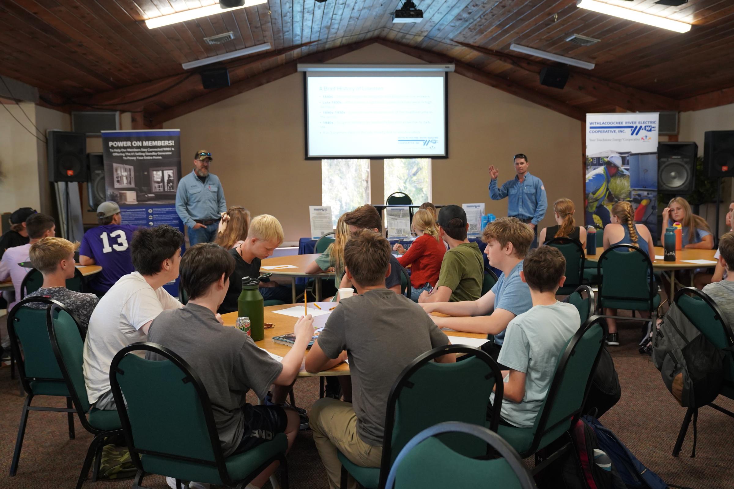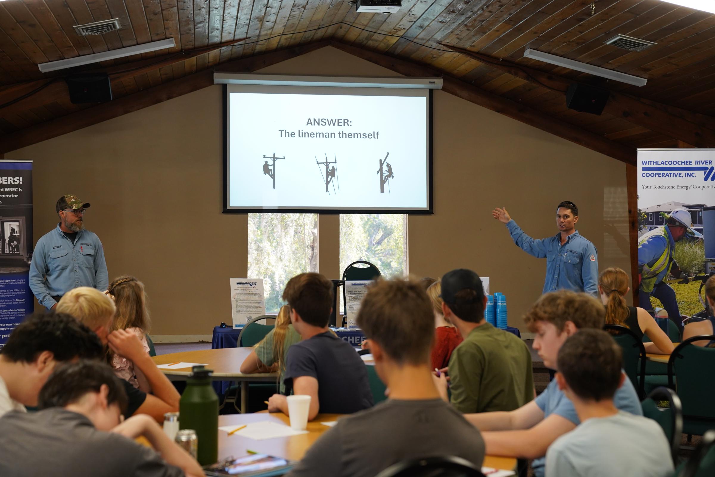 Today, WREC employees Jesse Diaz, Kirk Porter, and Marvin Bragg visited students from the Doorposts Homeschooling Co-op to share what it's like working as linemen and being part of our Cooperative family.