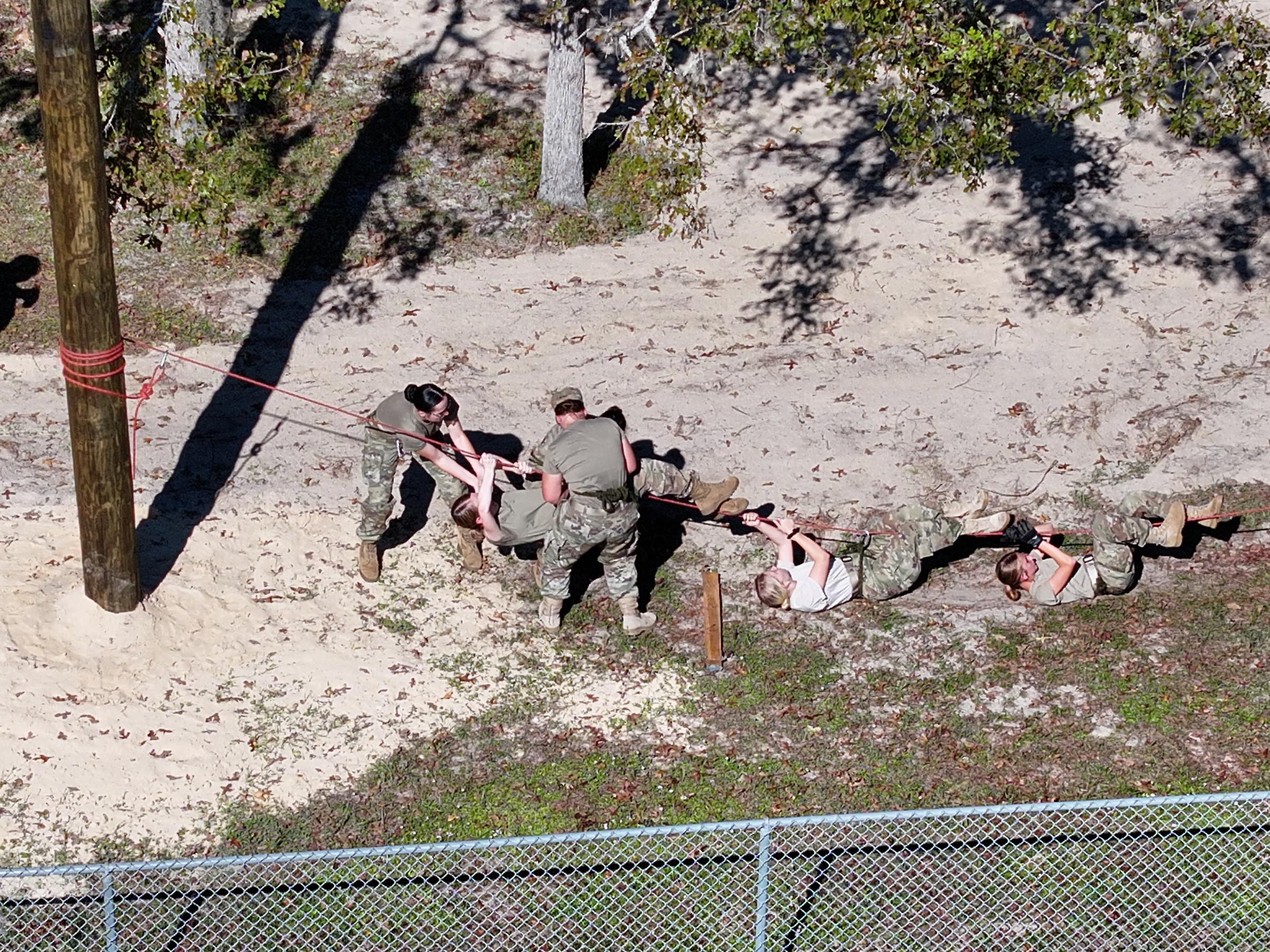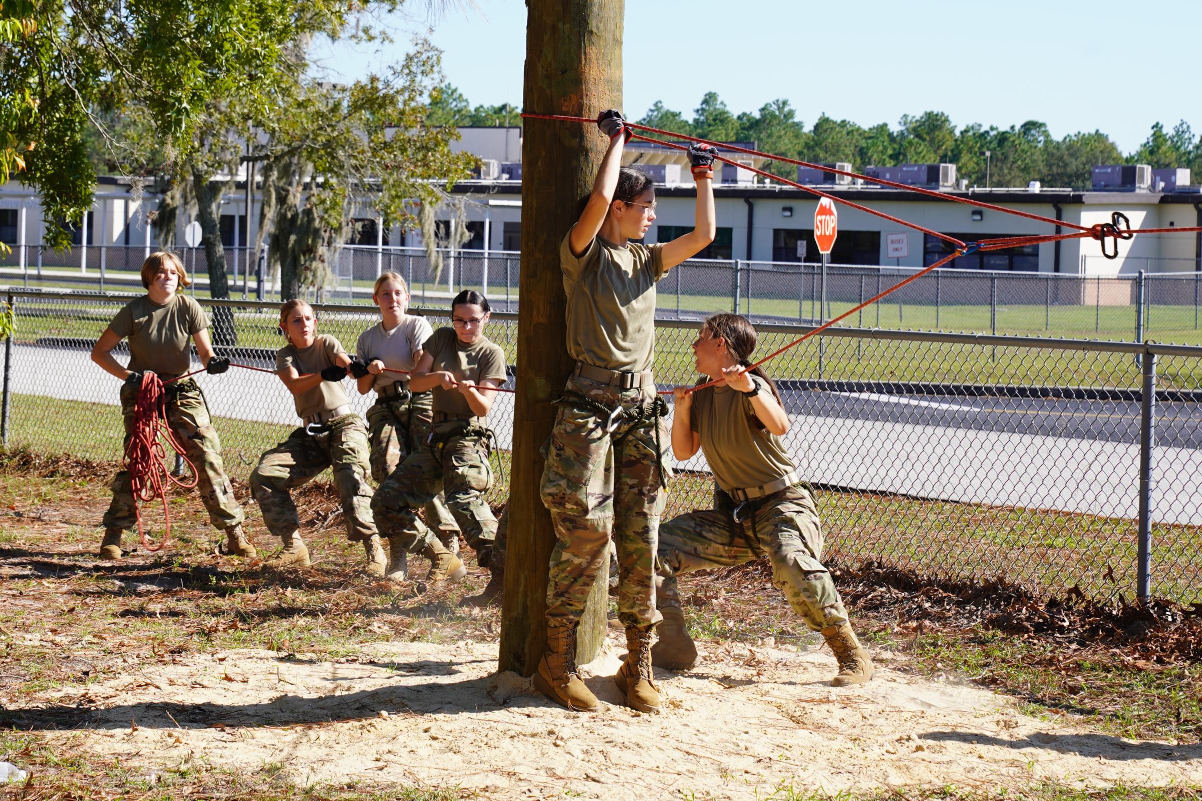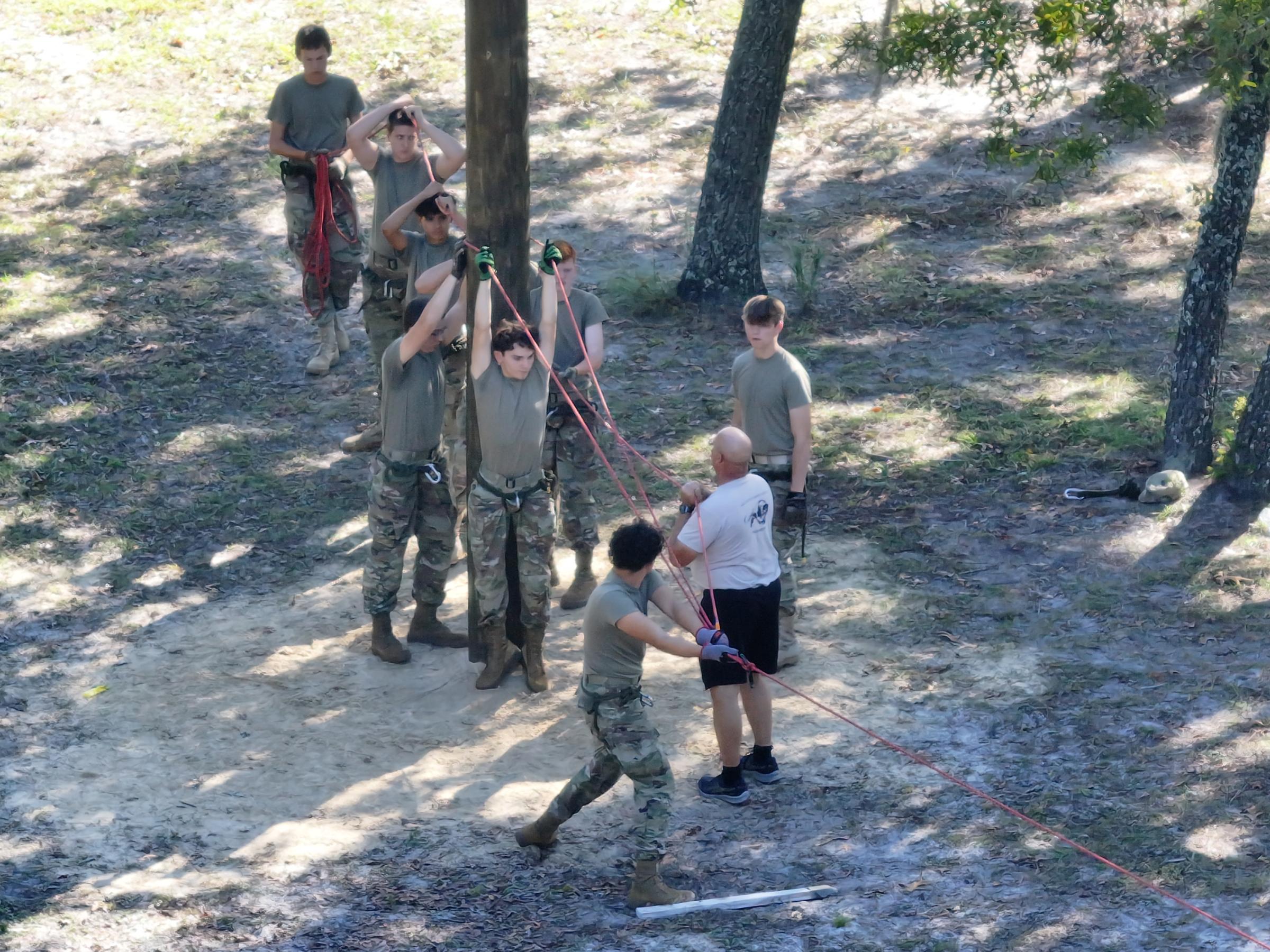 We recently donated and set utility poles - 15 feet in the ground and 15 feet above - to create a challenging rope bridge course. This setup will help cadets train for upcoming competitions that test speed, skill, agility, and teamwork.
