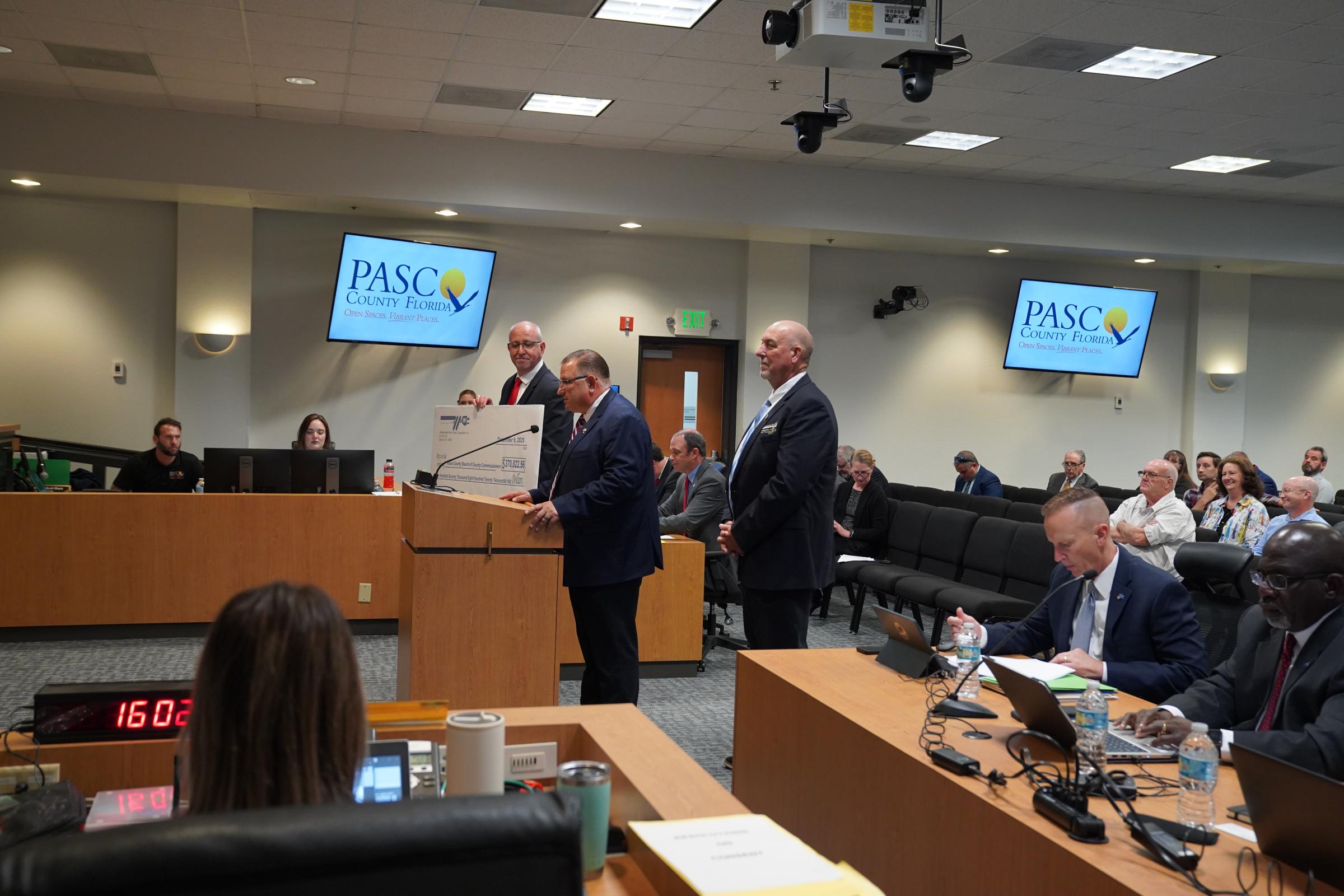 Today, WREC General Manager David Lambert, along with District Managers John McCarty and Ricky Gude, proudly presented the Pasco County Board of County Commissioners with a return of $370,822.56 in capital credits!